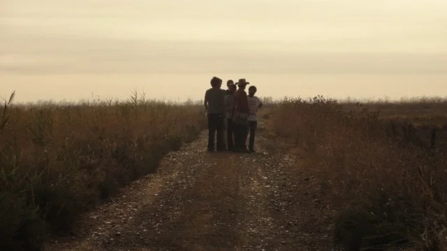 El rodaje de La Isla Mínima tenía coincidió con la recogida de la cosecha del arroz, por lo que el tiempo que estuvimos en los arrozales estuvo marcado por los procesos propios de la cosecha. El campo es impredecible y los tiempos del campo no son los tiempos del cine, no había fecha fija para el comienzo de la la recogida del arroz y eso nos afectaba de manera directa. Aprendimos a mirar el arroz, si estaba encamado o conocer por su color dorado si estaba a punto de ser recogido. Fue un rodaje duro en un espacio salvaje de paisajes increibles.